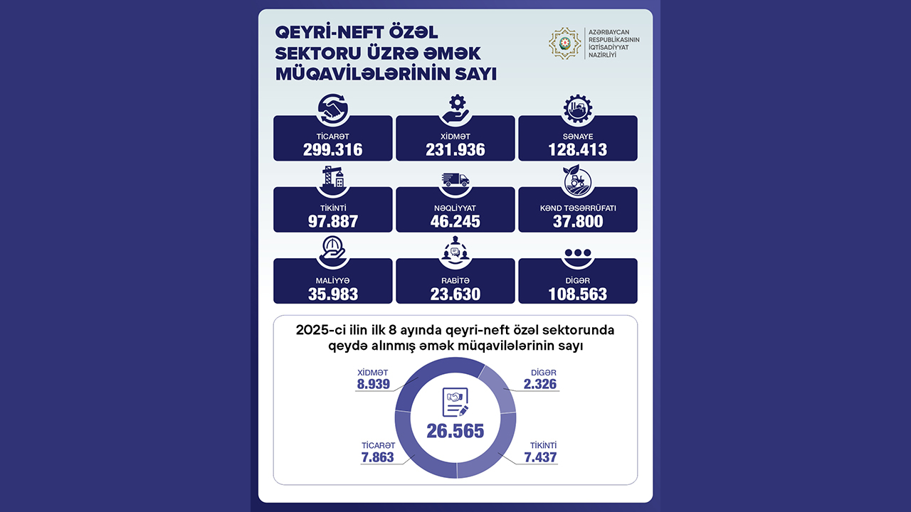 Qeyri-neft sektorunun özəl bölməsində əmək müqavilələrinin sayı bir milyonu keçib