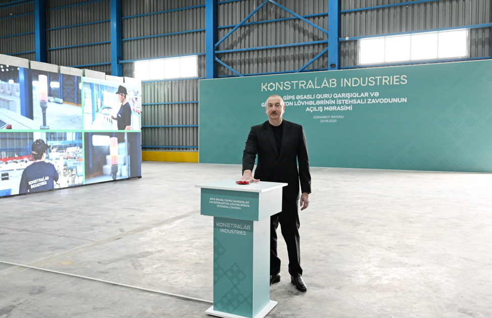 Azərbaycan Respublikasının Prezidenti İlham Əliyev iyunun 23-də Goranboy rayonunda “Konstralab Industries” QSC-nin tikinti materialları istehsalı müəssisəsinin açılışında iştirak edib.