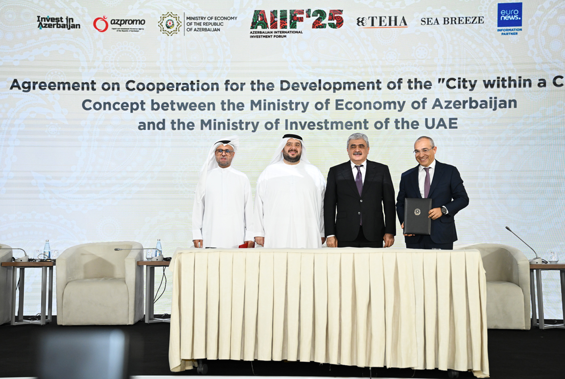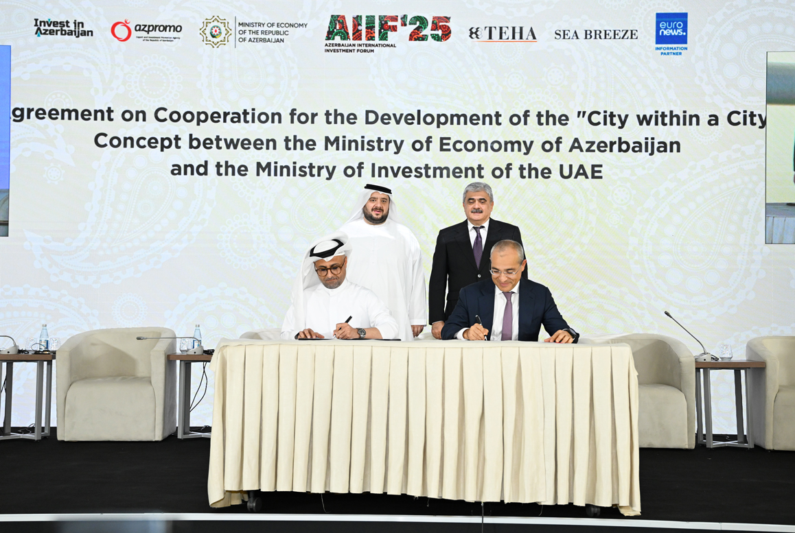 Plenar sessiya çərçivəsində Azərbaycan Respublikasının Baş nazirinin müavini Samir Şərifov və Birləşmiş Ərəb Əmirliklərinin investisiya naziri Məhəmməd Həsən Əl Suveydinin iştirakı ilə Azərbaycanın İqtisadiyyat Nazirliyi ilə Birləşmiş Ərəb Əmirliklərinin “Modon Holding”i arasında "Şəhər daxilində şəhər" ("City within a City") konsepsiyasının inkişafına dair Əməkdaşlıq Müqaviləsi imzalanıb. Sənədi iqtisadiyyat naziri Mikayıl Cabbarov və “Modon Holding”in sədri Cassem Əl Zaabi imzalayıblar. Konsepsiya Böyükşor gölü ətrafında sağlamlıq, ticarət, təhsil və mehmanxana obyektlərini əhatə edən müasir sahilyanı zonanın yaradılmasını nəzərdə tutur.