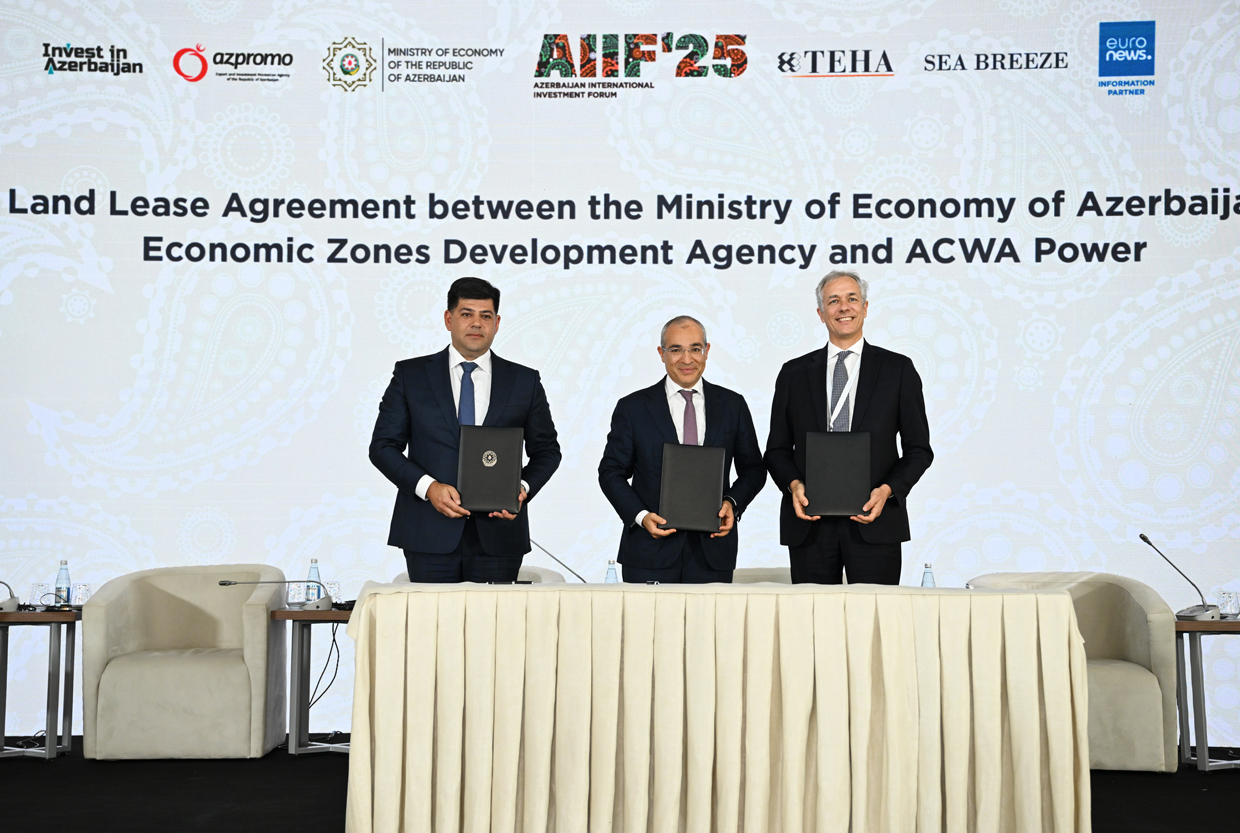Torpaq Sahəsinin İcarəsinə dair Müqavilə - sənədi iqtisadiyyat naziri Mikayıl Cabbarov və İqtisadiyyat Nazirliyinin tabeliyində İqtisadi Zonaların İnkişafı Agentliyinin İdarə Heyətinin sədri Seymur Adıgözəlov və Marco Arçelli imzalayıblar