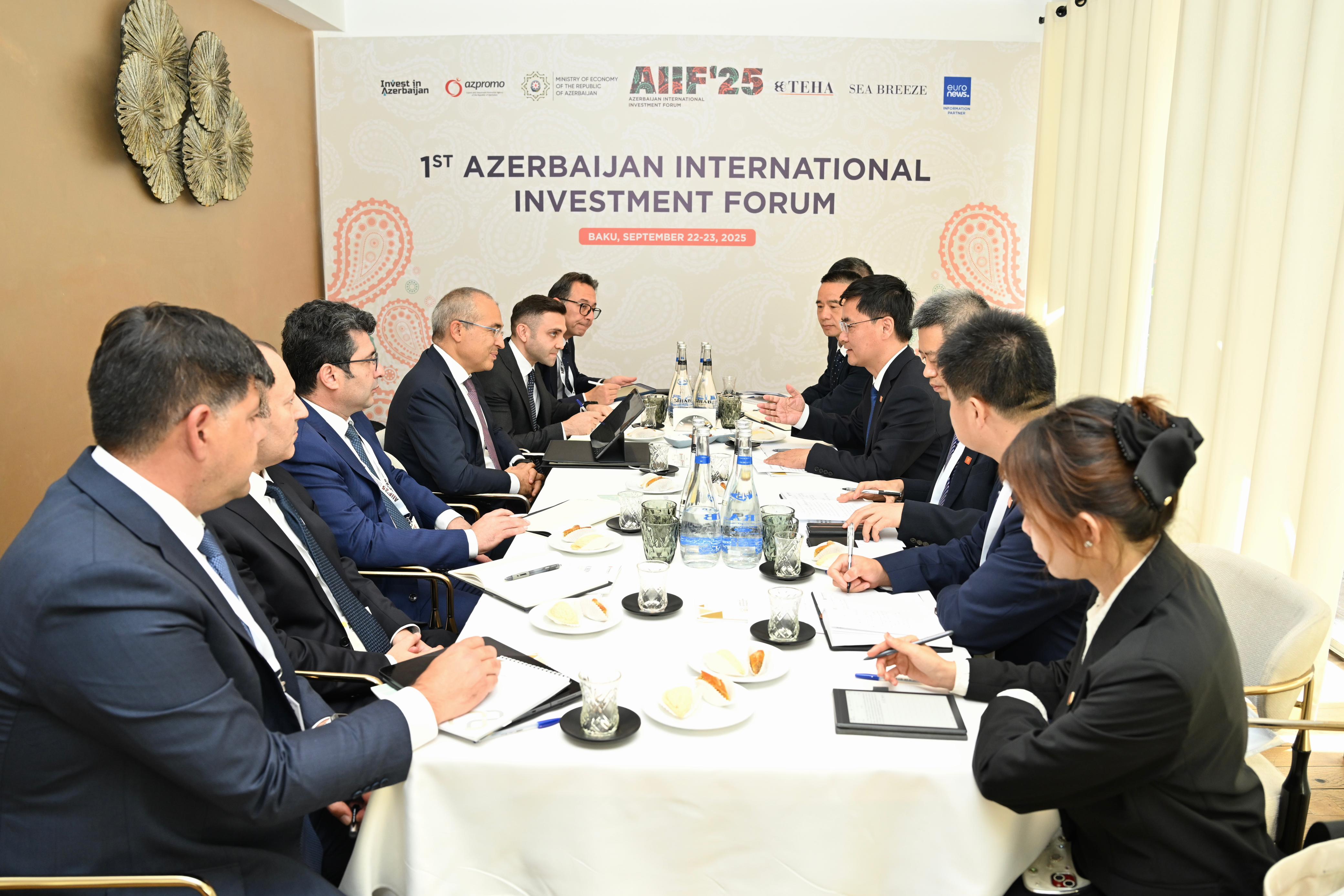 İqtisadiyyat naziri Mikayıl Cabbarov Birinci Azərbaycan Beynəlxalq İnvestisiya Forumu çərçivəsində Çinin “Datang Overseas Investment Co” şirkətinin prezidenti Yuanlong Jou ilə görüşüb.