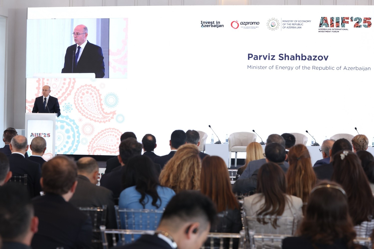 Azərbaycan Respublikasının Prezidenti cənab İlham Əliyevin himayəsi altında keçirilən Birinci Azərbaycan Beynəlxalq İnvestisiya Forumu panel sessiyalarla davam edib. Növbəti sessiya çərçivəsində beynəlxalq ekspertlər və aparıcı şirkət rəhbərləri enerji, nəqliyyat, yaşıl keçid üzrə müzakirələr aparıblar.
