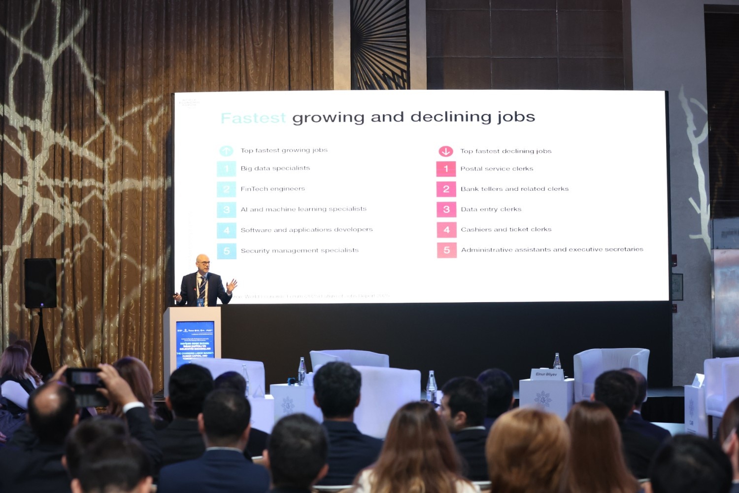 Neil Alison tədbir çərçivəsində “Gələcəyin peşələri 2025” (“Future of Jobs 2025”) hesabatının nəticələrini təqdim edərək qlobal bacarıq trendlərinin Azərbaycan üçün mümkün təsirlərini şərh edib. Tədbir iştirakçıları arasında ölkə üzrə əsas bacarıq prioritetlərinə dair sorğu keçirilib.