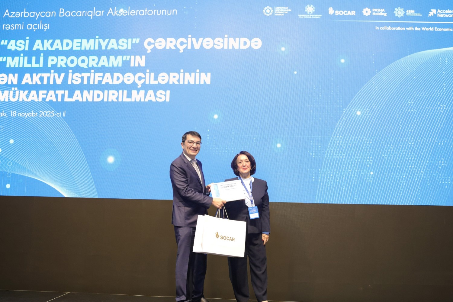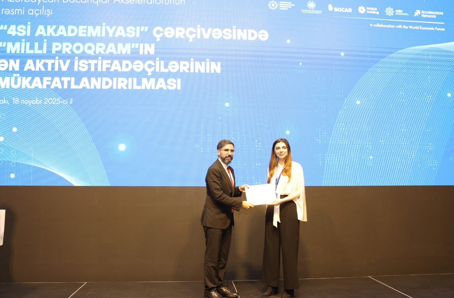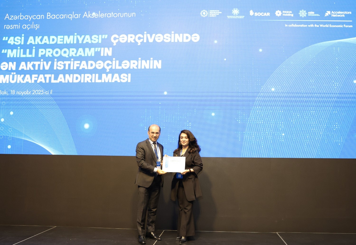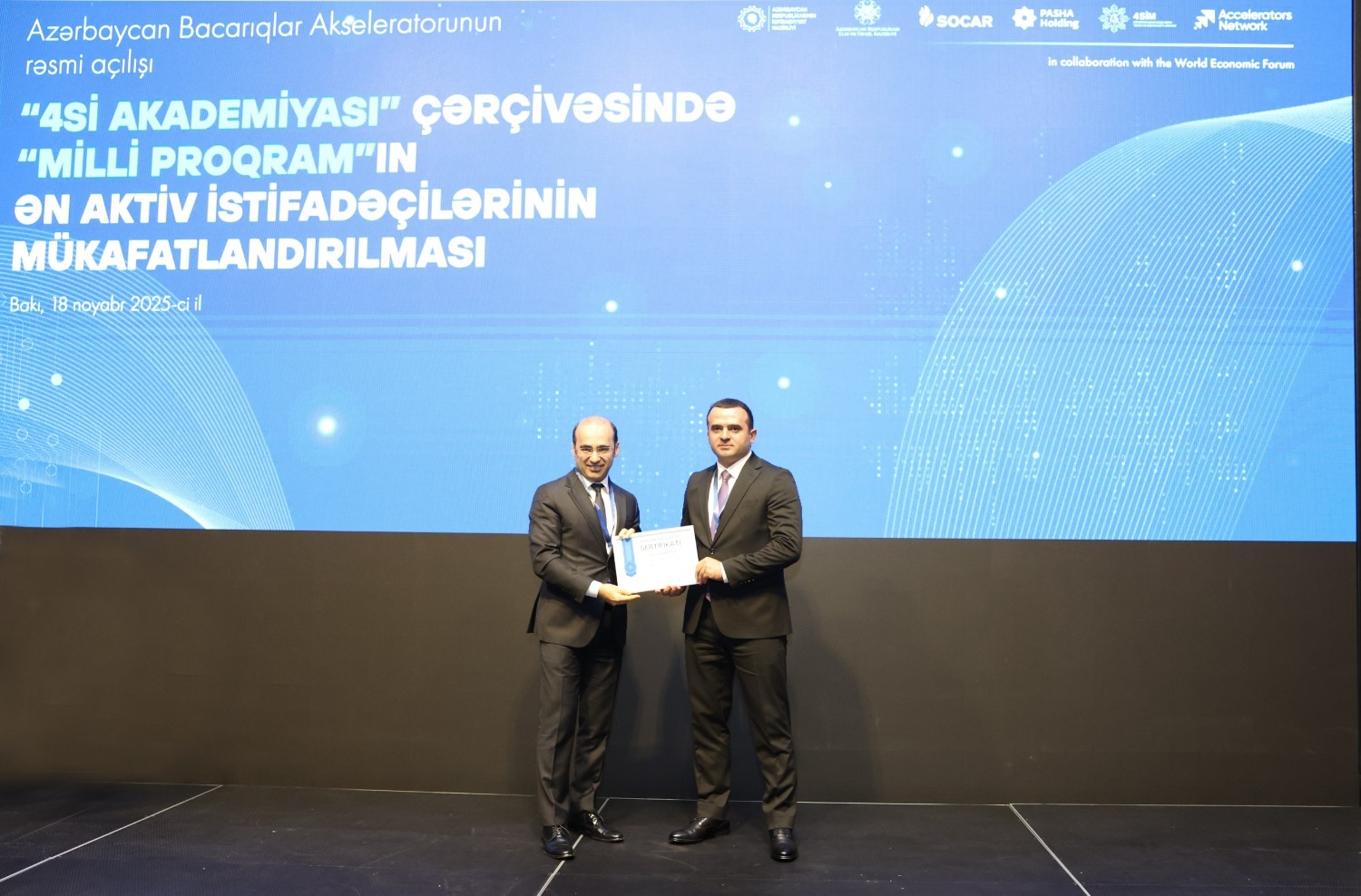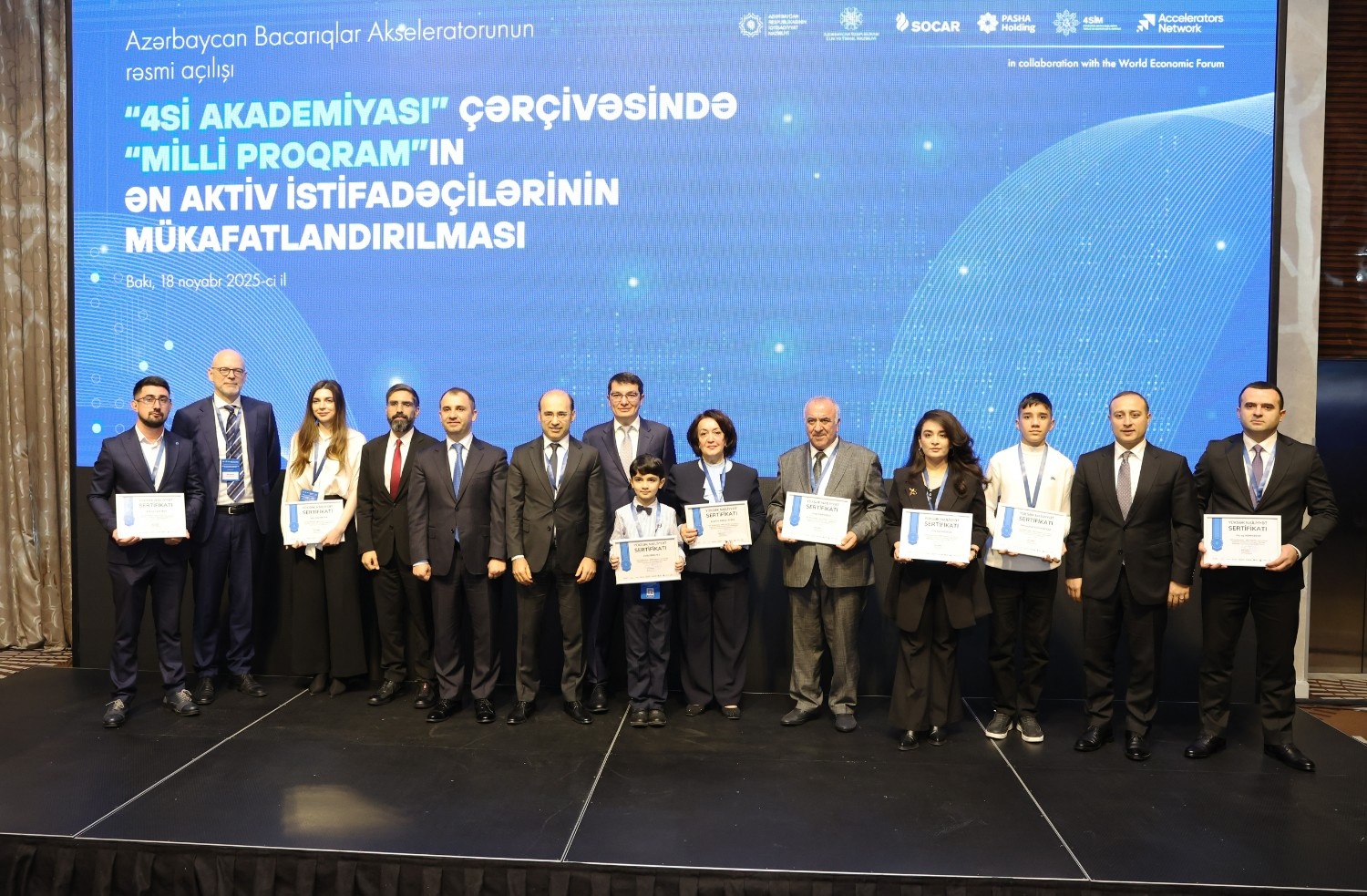 Azərbaycan Respublikasının İqtisadiyyat Nazirliyi və Dünya İqtisadi Forumunun (DİF) Bacarıqlar Akseleratoru Şəbəkəsi (Skills Accelerator Network) arasında tərəfdaşlıq çərçivəsində ölkəmizdə bacarıqların yenilənməsinə yönəlmiş “Azərbaycan Bacarıqlar Akseleratoru” layihəsinə start verilib. Bununla bağlı İqtisadiyyat Nazirliyinin tabeliyində Dördüncü Sənaye İnqilabının Təhlili və Koordinasiya Mərkəzinin (4SİM) təşkilatçılığı ilə “Dəyişən əmək bazarı: insan kapitalı və gələcəyin bacarıqları” mövzusunda tədbir keçirilib.