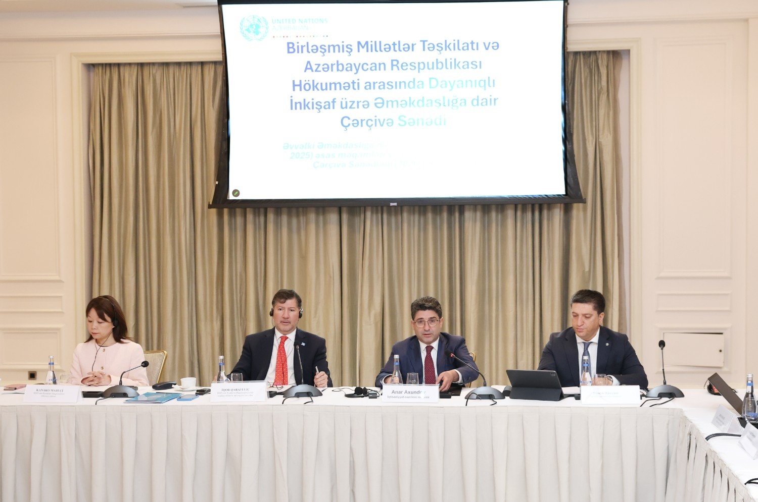 BMT-nin Azərbaycandakı Rezident Əlaqələndiricisinin Ofisinin rəhbəri xanım Kanako Mobuçi 2021–2025-ci illər Dayanıqlı İnkişaf üzrə Əməkdaşlığa dair Çərçivə Sənədinin nəticələrinə dair təqdimatla çıxış edib. Daha sonra 2026-2030-cu illər üçün yeni Çərçivə Sənədinə dair ümumi baxış təqdim edilib.